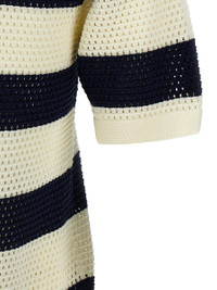 Bayadere Mouette striped open-knit cotton-blend polo shirt Blue
