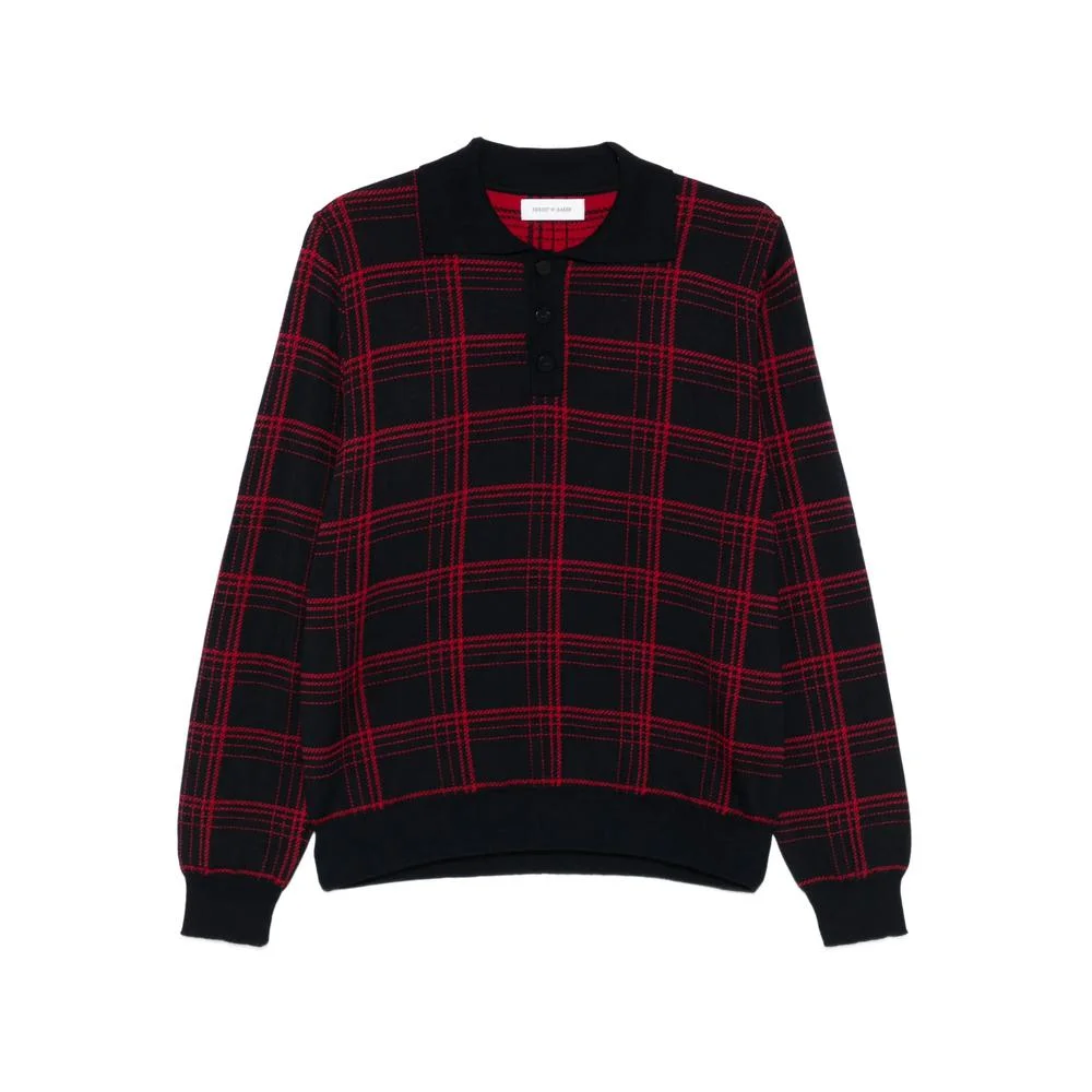 Navy blue and red checked pattern polo neck long sleeves button fastening ribbed cuffs Gender: Men Material: ACETATE: 50.0%, MERINO: 50.0% Color: Multicolor Made in: Portugal Product ID: KN167 EM49 NVRD *Import tax/duty will be calculated at checkout (If applicable)