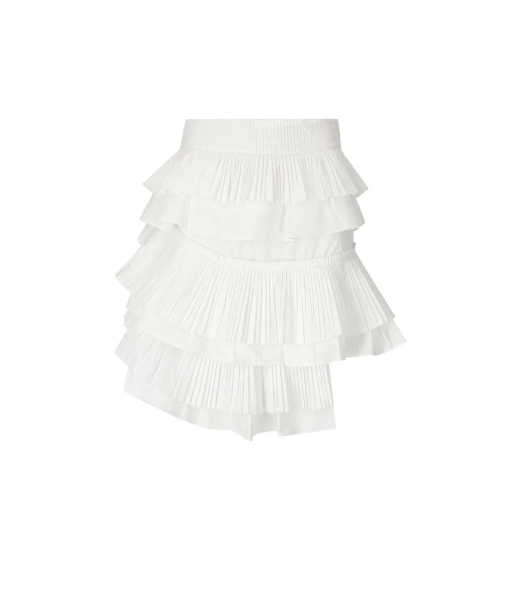 Mini skirt Hupaul by Essentiel Antwerp made of cotton in white color. Characterized by a high elasticized waist, it stands out for its asymmetric ruffle details. Equipped with a hidden zip closure on the side of the garment. Relaxed fit. The model is 180 cm tall and wears size S. Composition: 100% cotton. Gender: Women Material: COTTON Color: WHITE Made in: IN Product ID: HUPAUL-WH00 *Import tax/duty will be calculated at checkout (If applicable)