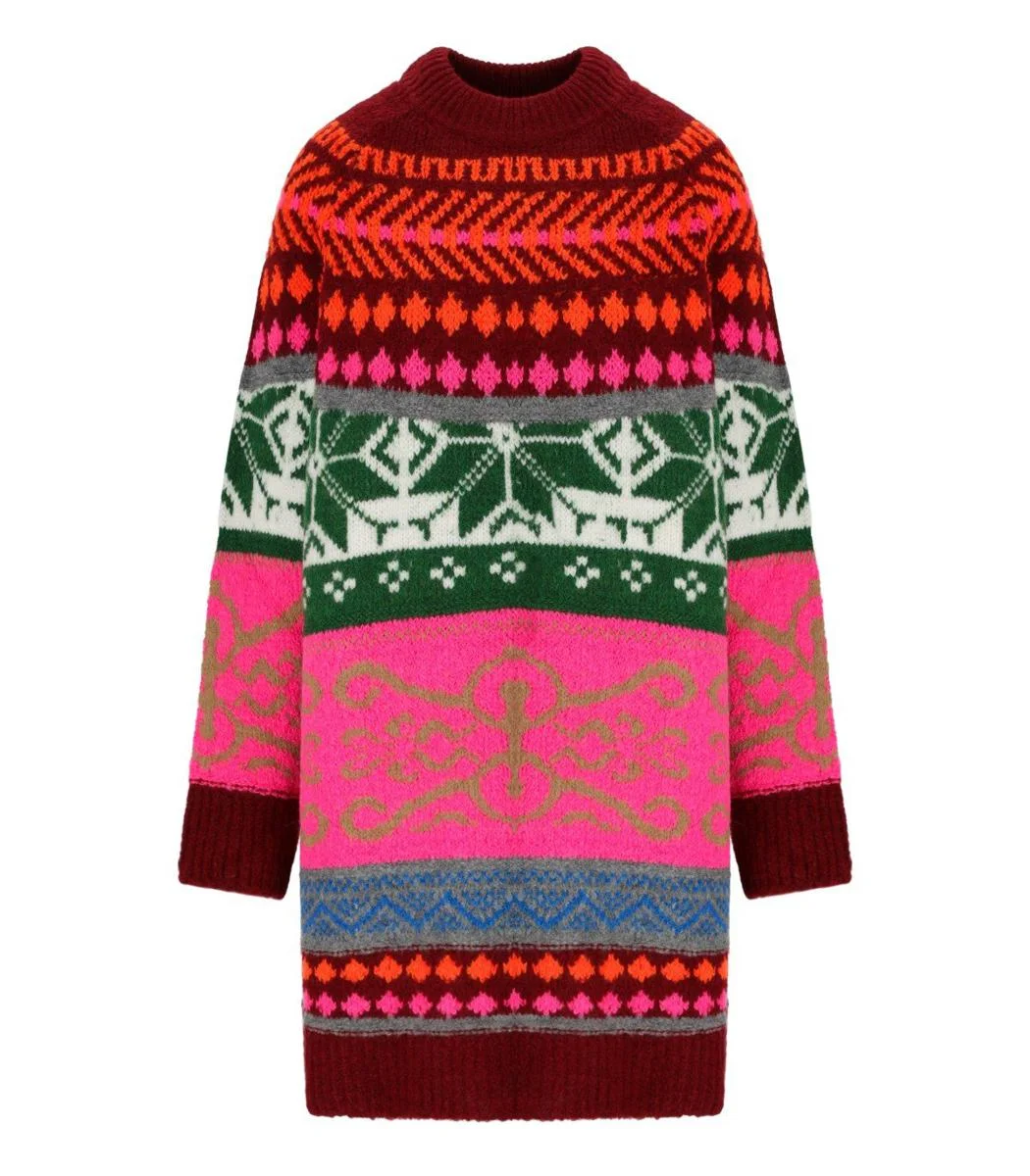 fairisle crew-neck knitted day dress