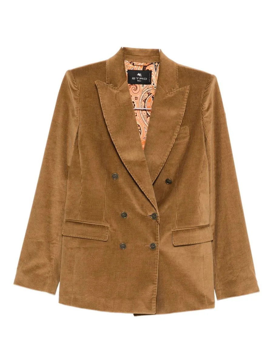 Etro Camel-Colored Ribbed Double-Breasted Blazer