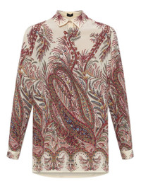 This long, flowing shirt by Etro is crafted from fine silk crepe de chine, the refined floral paisley print adds a distinctive and sophisticated touch, perfect for elegant looks with a contemporary ethnic feel - Etro - Long-sleeved shirt - Pure silk crepe de chine - Floral paisley print - Regular fit - Classic collar - Long sleeves - Buttoned cuffs - Long, straight design Gender: Women Material: .100% SILK Color: MULTICOLOUR Made in: Italy Product ID: WRIA0029 AKA36 X0801 *Import tax/duty will be calculated at checkout (If applicable)