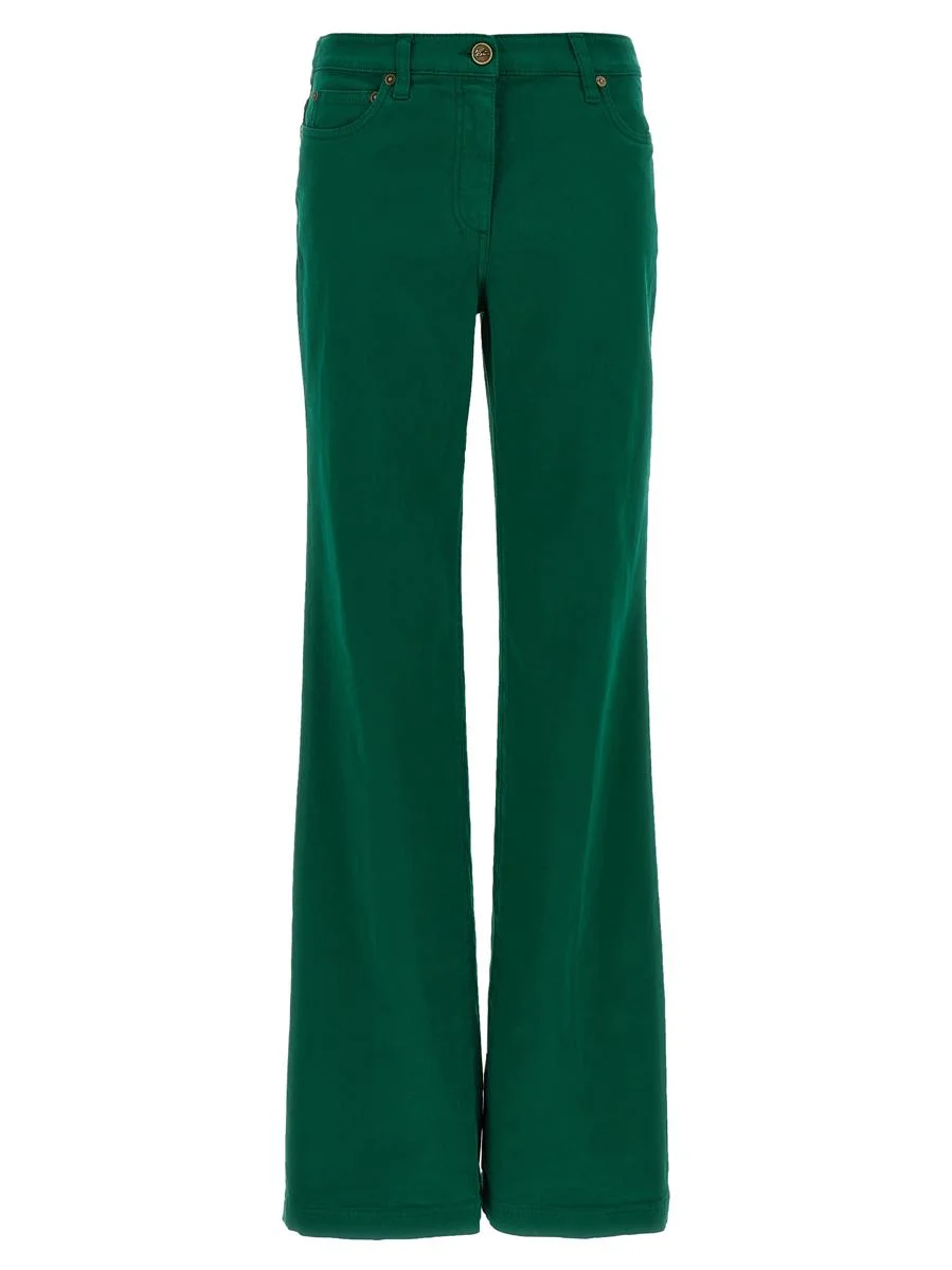 Cotton pants, wide and straight leg, low waist, front zip and button closure, pockets, logo embroidery and back logo tag Gender: Women Material: 98% COTTON, 2% ELASTANE Color: GREEN Made in: Italy Product ID: WRNB0026AV689V0402 *Import tax/duty will be calculated at checkout (If applicable)