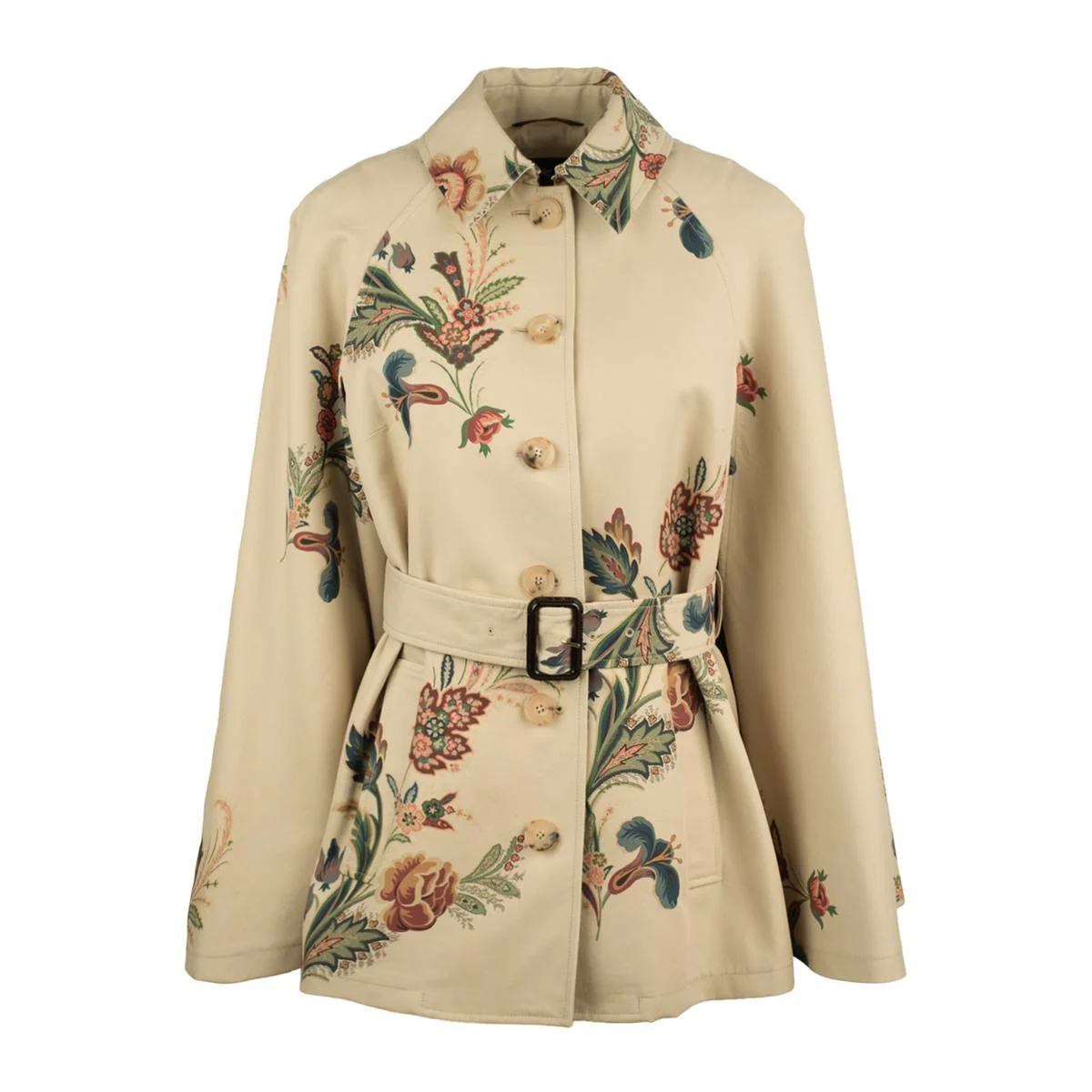 Item Color: Beige | Made in Italy | Short trench coat made from double cotton fabric with a distinctive cape-inspired design | The pattern features a refined all over floral print and is complemented by a coordinating belt with buckle | The interior is embellished instead with a contrasting check pattern | Regular fit | Pointed collar | Coordinating belt with buckle | Side pockets | Composition: 99% Cotton, 1% Polyamide | Lining: 99% Cotton, 1% Polyamide Gender: Women Material: COTTON, SYNTHETICS Color: Beige Made in: Italy Product ID: WRBD002499SA5M9X0804 *Import tax/duty will be calculated at checkout (If applicable)