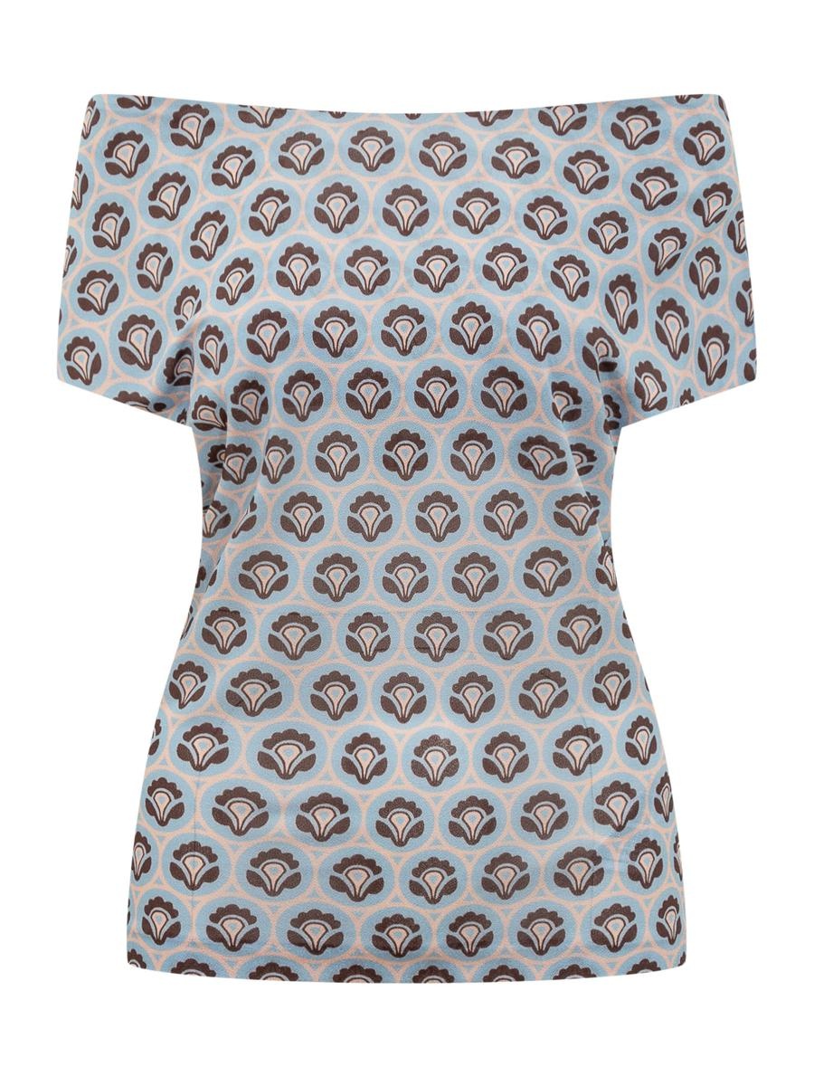 Short-sleeved viscose top. Boat neckline. All over Aurea print. Gender: Women Material: 100% VISCOSE Color: BLUE Made in: IT Product ID: WRJA004699IA417 X0880 *Import tax/duty will be calculated at checkout (If applicable)