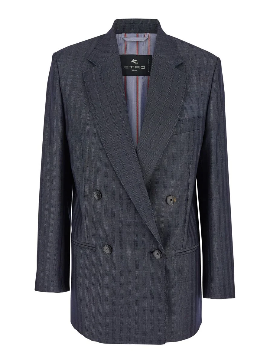 Etro Gray Pinstripe Double-Breasted Blazer
