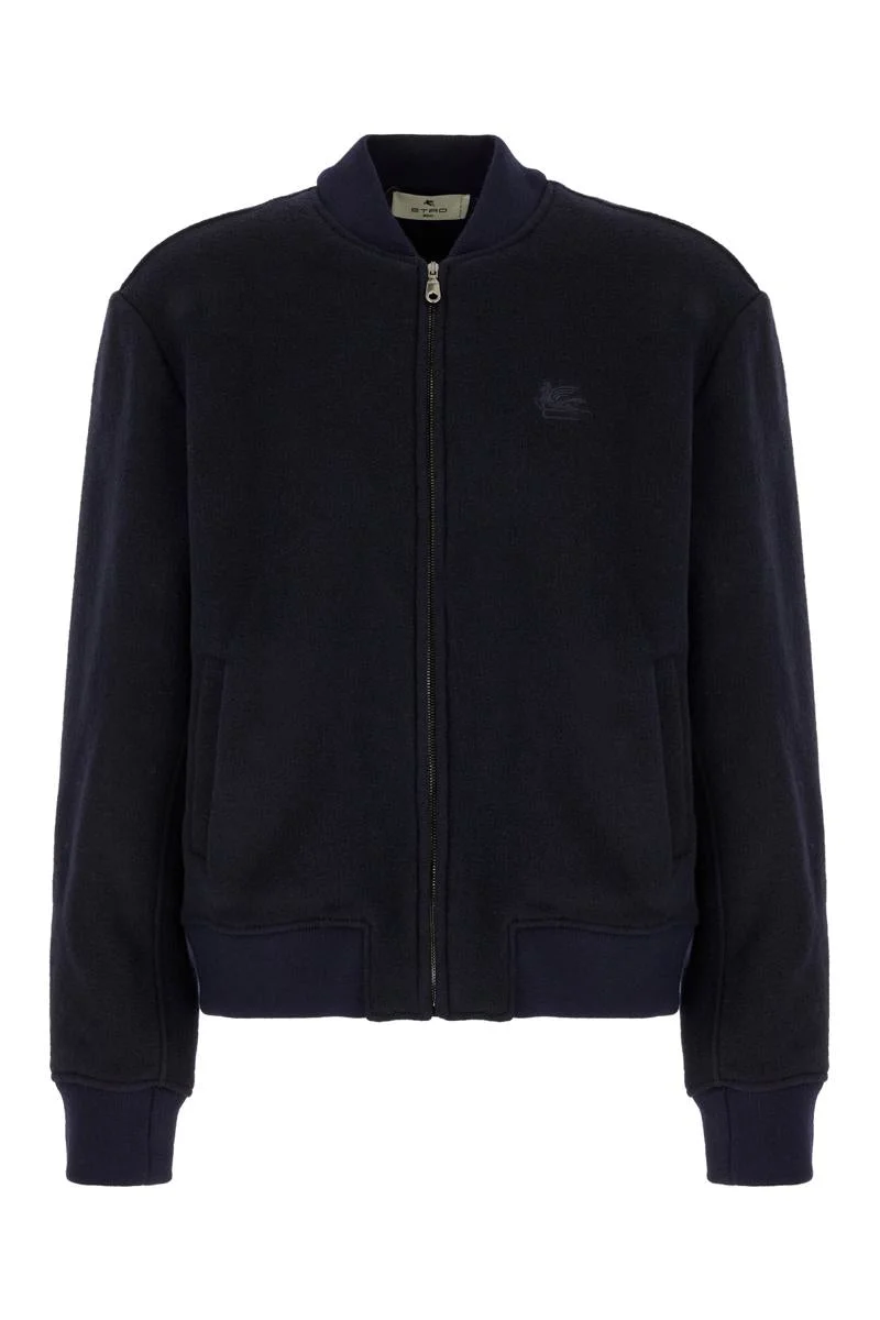 Logo-Embroidered Wool-Blend Bomber Jacket Blue
