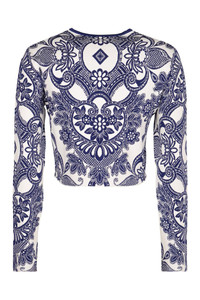 Jacquard knit cardigan Cropped-length 83% Viscose, 17% Polyester Gender: Women Material: VISCOSE Color: BLUE Made in: IT Product ID: WRKE0048AV549_B0309 *Import tax/duty will be calculated at checkout (If applicable)
