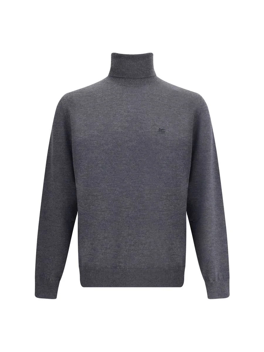 WOOL TURTLENECK SWEATER FROM ETRO, FEATURING A RIBBED HIGH NECK THAT ENSURES WARMTH AND COMFORT. THE GARMENT FEATURES A TONE-ON-TONE EMBROIDERED PEGASUS LOGO ON THE FRONT, A REFINED DETAIL THAT RECALLS THE BRAND'S DISTINCTIVE IDENTITY. COMPLETING THE DESIGN ARE RIBBED CUFFS AND HEM, FOR A SNUG AND DEFINED FIT, IDEAL FOR A SLEEK AND CONTEMPORARY LOOK. STANDARD Gender: Men Material: WOOL Color: GREY Made in: Imported Product ID: MRKF0067AL291_N0542 *Import tax/duty will be calculated at checkout (If applicable)