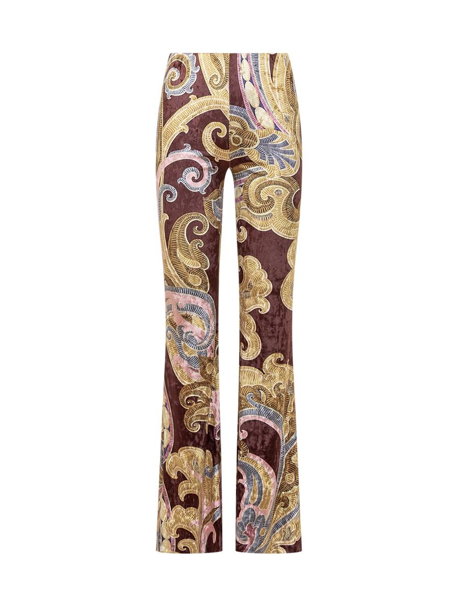 Brown velvet-effect pants. Paisley all-over pattern. Slightly flared bottom. Zipper closure on the side. Gender: WOMEN Material: 92% POLYESTER 8% ELASTANE Color: MULTICOLOR Made in: IT Product ID: WREA002699IAS22 X0826 *Import tax/duty will be calculated at checkout (If applicable)