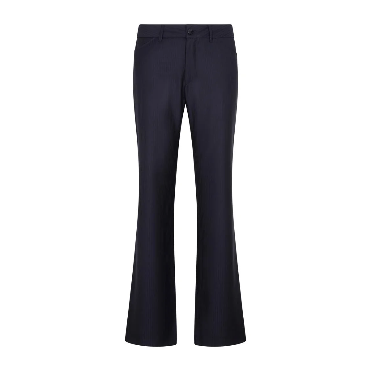 Etro Blue Wool Bootcut Trousers. Crafted in pure blue virgin wool with a tonal pinstripe print. Front concealed fastening with visible button, belt loops, two front slit pockets, two back buttoned pockets, bootcut leg, straight hem. Gender: Men Material: 100%VIRGIN WOOL Color: BLUE Made in: IT Product ID: 1W779.1142_0200 *Import tax/duty will be calculated at checkout (If applicable)