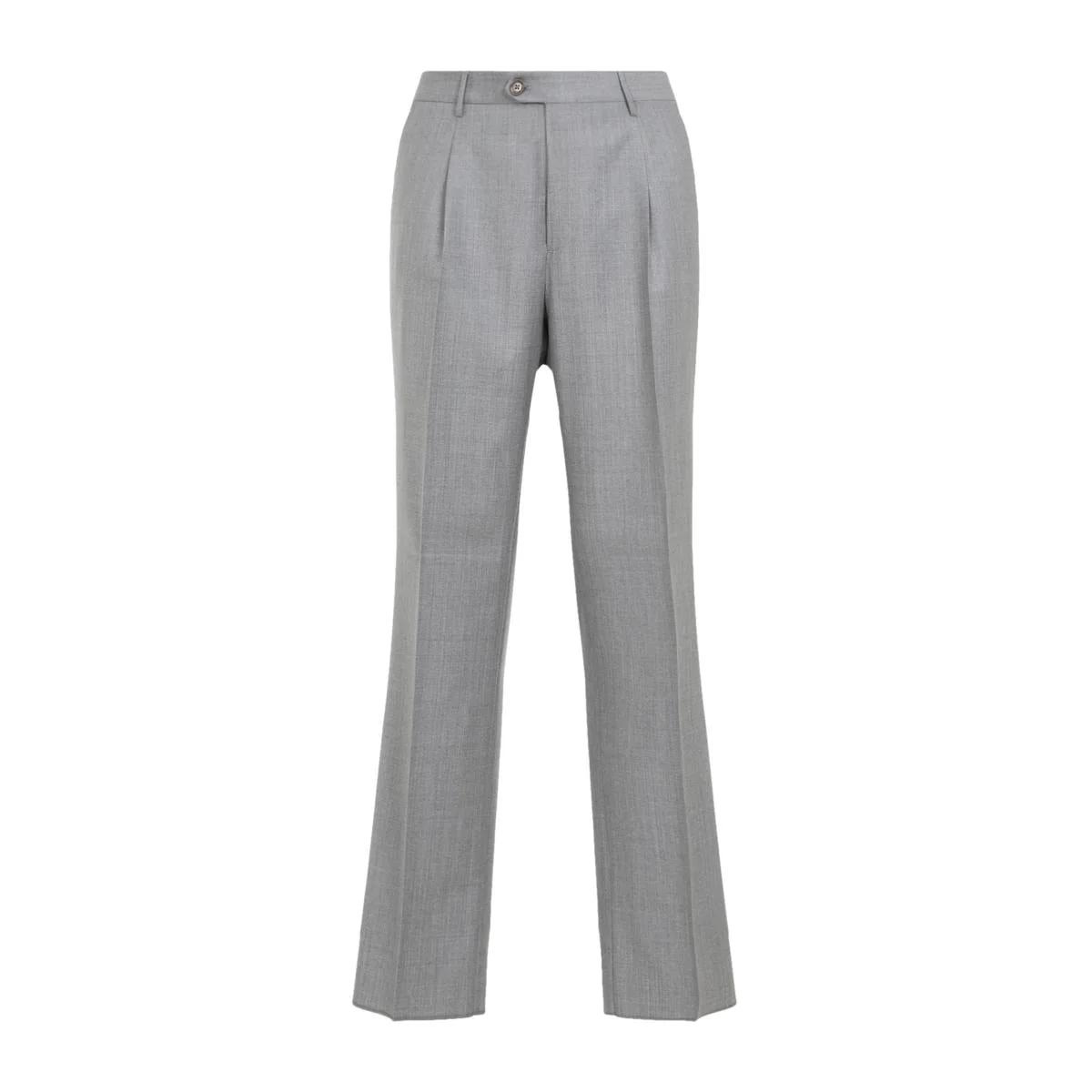 Etro Single Pleat Grey Wool Pants. Crafted from grey wool, belt loops, front button and concealed zip closure, front darts, central loose creases, slant pockets, welt pockets on the back, unfinished hem for tailoring. Gender: Men Material: 100%WOOL Color: GREY Made in: IT Product ID: MREA0023.99TU2H5_0634 *Import tax/duty will be calculated at checkout (If applicable)