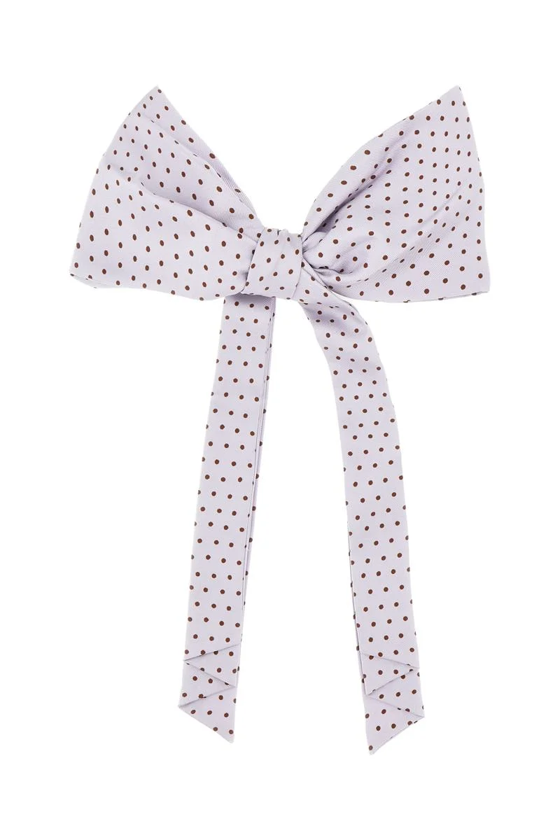 Lilac silk bow with polka dot pattern. Hook-and-eye closure at back. Gender: WOMEN Material: OUTSIDE:100% SILK Color: PURPLE Made in: IT Product ID: 1D0919072 0450 *Import tax/duty will be calculated at checkout (If applicable)