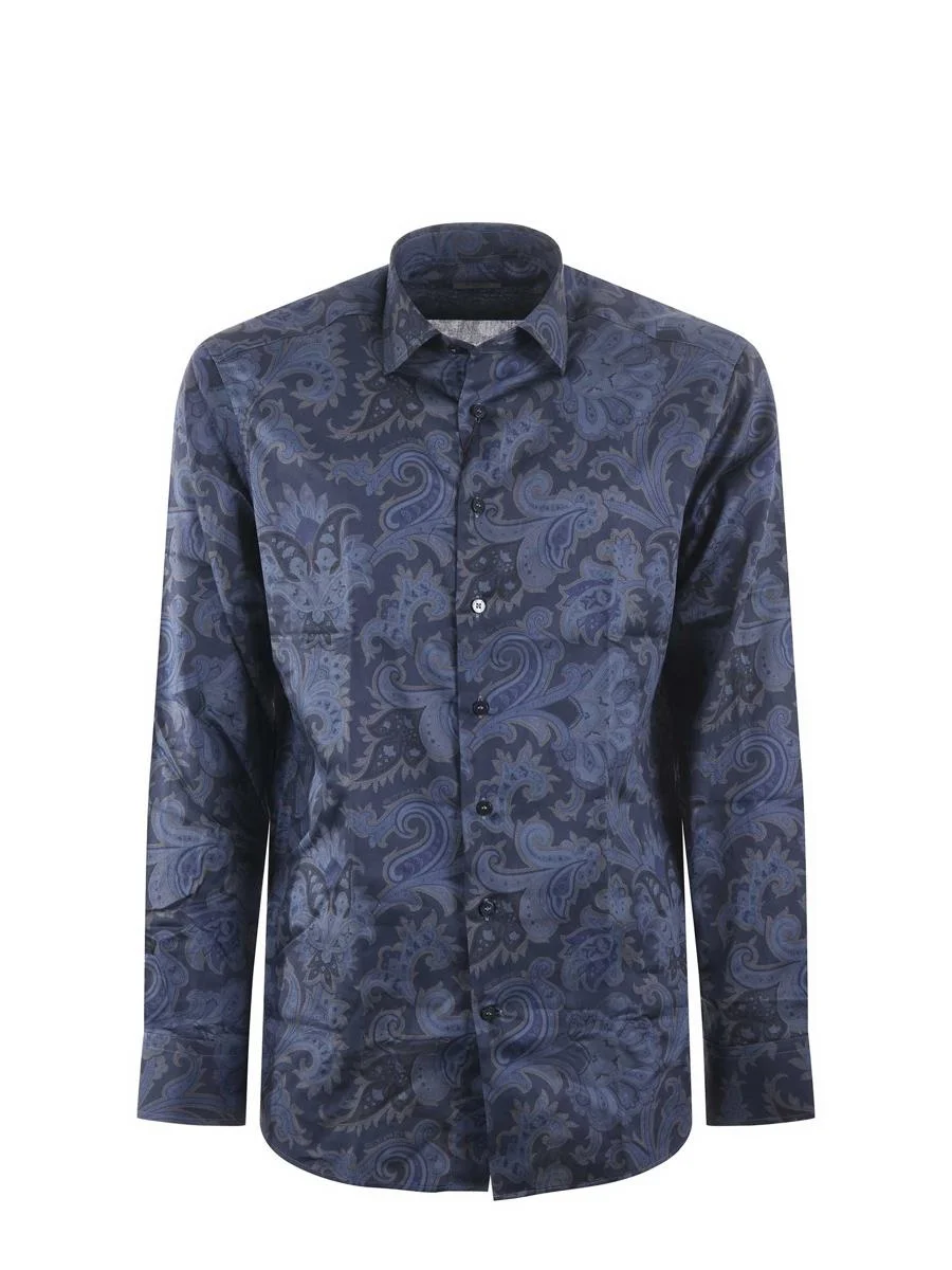 Etro shirt in jacquard cotton Dark blue macro floral and cashmere pattern. Classic collar. Button closure. Long sleeve. Double button cuffs. Regular fit. Gender: Men Material: 100% COTTON Color: BLUE Made in: IT Product ID: MRIB000199SA5F2-X0883 *Import tax/duty will be calculated at checkout (If applicable)
