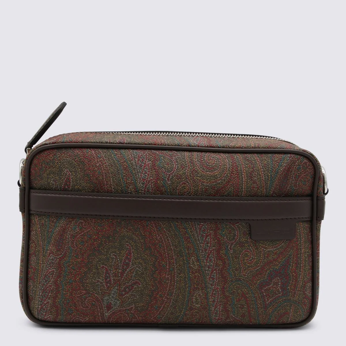 Top zip closure Removable logoed grosgrain shoulder strap with internal multicolor striped pattern Front pocket with brown leather edge Brown leather patch with ETRO logo embossed on the front Internal main compartment with zipped pocket Metal accessories with gold-colored finish Width 24.5cm, Height 15.3cm, Depth 6.5cm Brown color Exterior: Paisley jacquard cotton fabric coated with matte grain and doubled in canvas; Details: 100% Calfskin Made in Italy Gender: Men Material: 100% COTTON Color: BROWN Made in: IT Product ID: MP1C0001AA012M0019 *Import tax/duty will be calculated at checkout (If applicable)