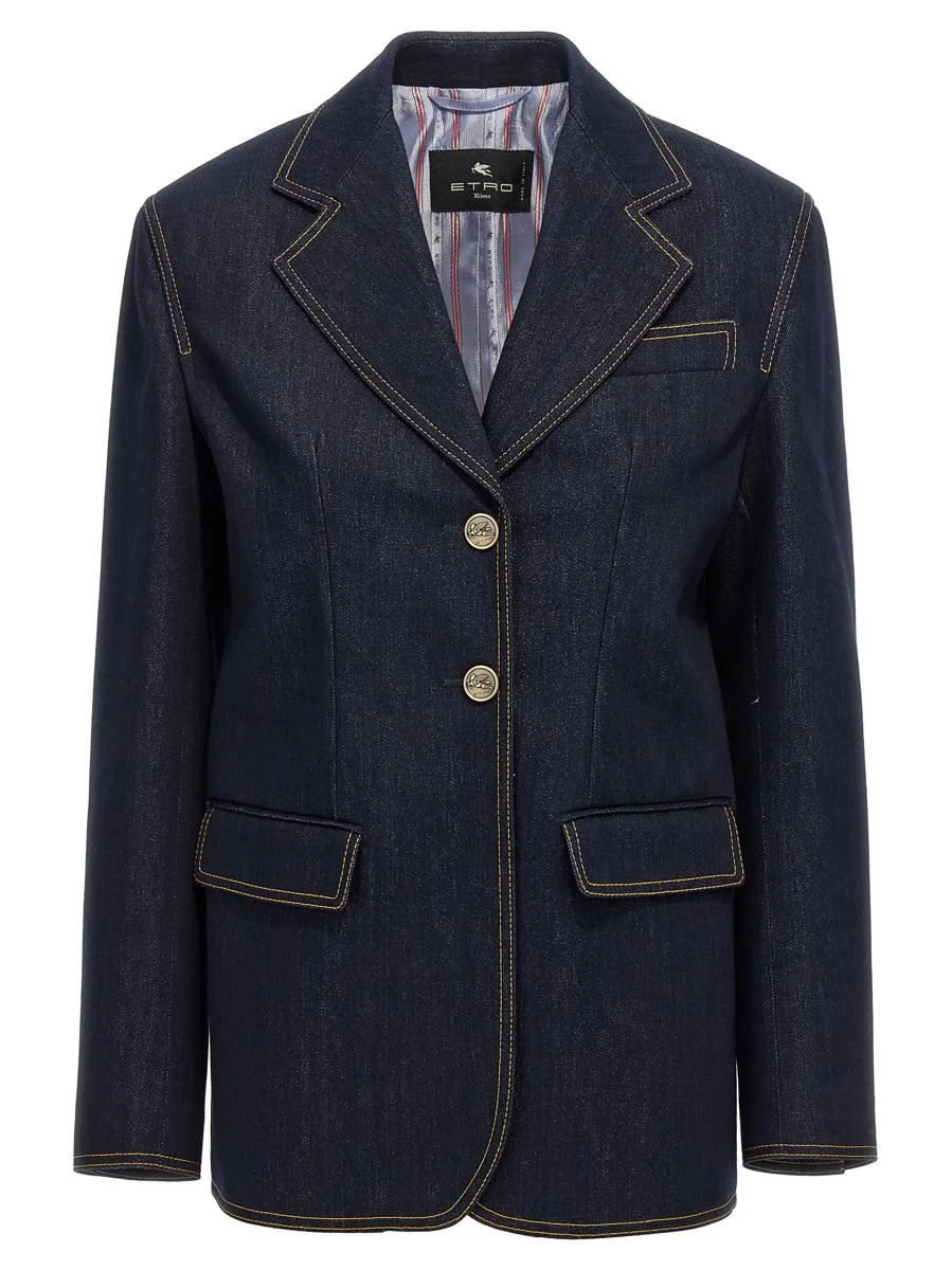 Single-breasted denim blazer with button closure, pockets, long sleeves, padded shoulders, back split Gender: Women Material: 70% COTTON, 20% VISCOSE, 10% CF Color: BLUE Made in: IT Product ID: WRNA0012AD177S9000 *Import tax/duty will be calculated at checkout (If applicable)