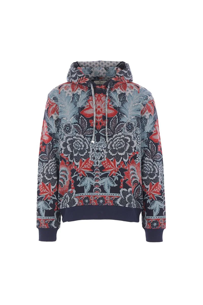 Etro hoodie crafted from blue cotton jersey with an all-over floral print. Featuring long sleeves and ribbed edges. Gender: Men Material: 100% COTTON Color: BLUE BACKGROUND PRINTING Made in: Italy Product ID: MRMB0034AK950X0883 *Import tax/duty will be calculated at checkout (If applicable)
