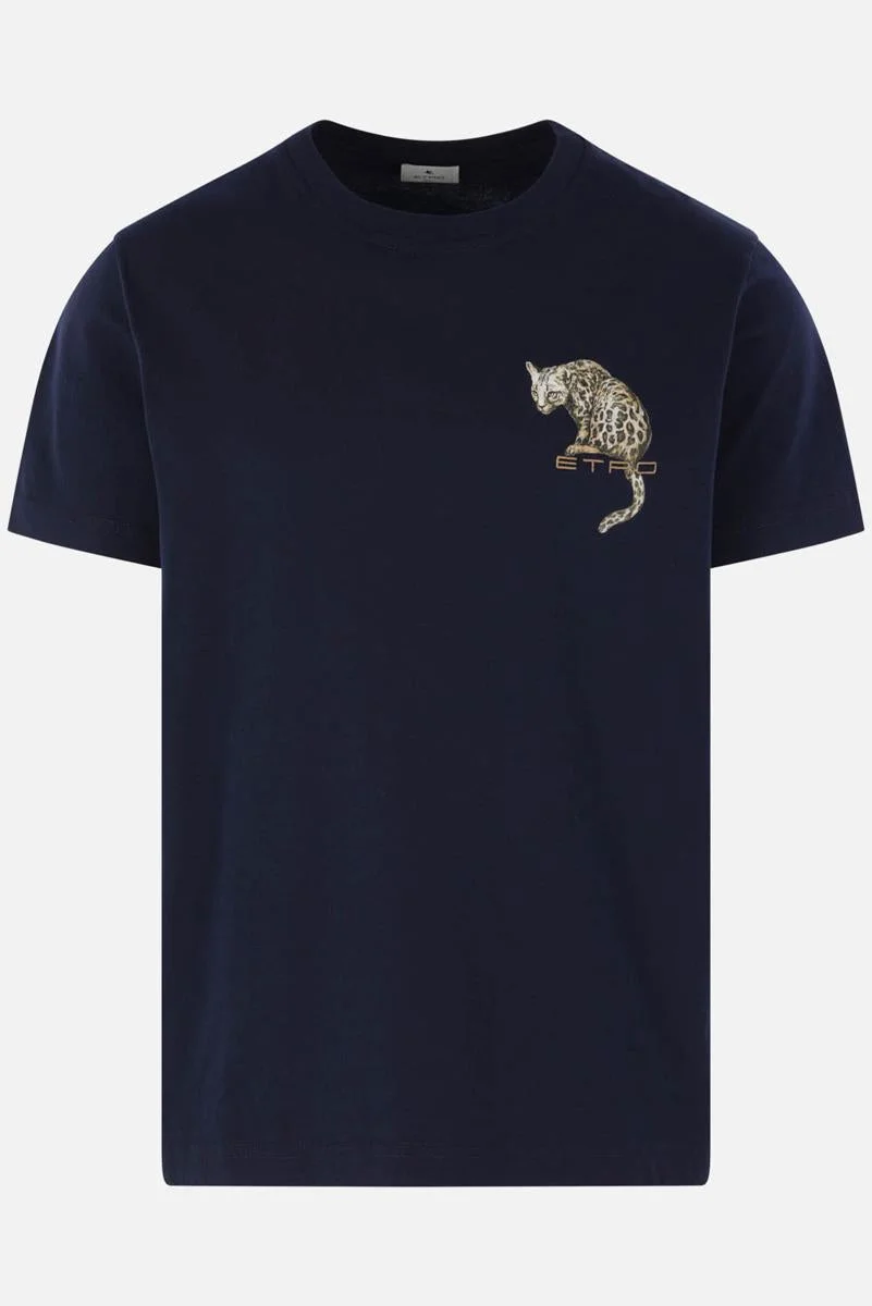 COTTON T-SHIRT WITH LEOPARD PRINT AND ETRO EMBROIDERY