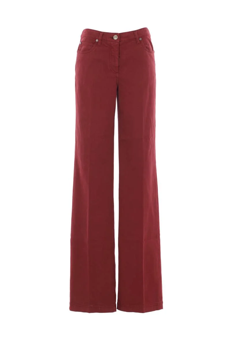 Etro trousers crafted from burgundy stretch cotton. Featuring front metal button and zip closure, belt loops, five classic pockets, and leather logo patch on the back. Gender: Women Material: 98% COTTON 2% ELASTANE Color: DARK AUBERGINE Made in: Italy Product ID: WRNB0026AV689F0130 *Import tax/duty will be calculated at checkout (If applicable)