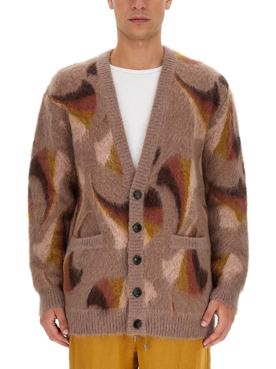 Printed Brushed Mohair-Blend Jacquard Cardigan