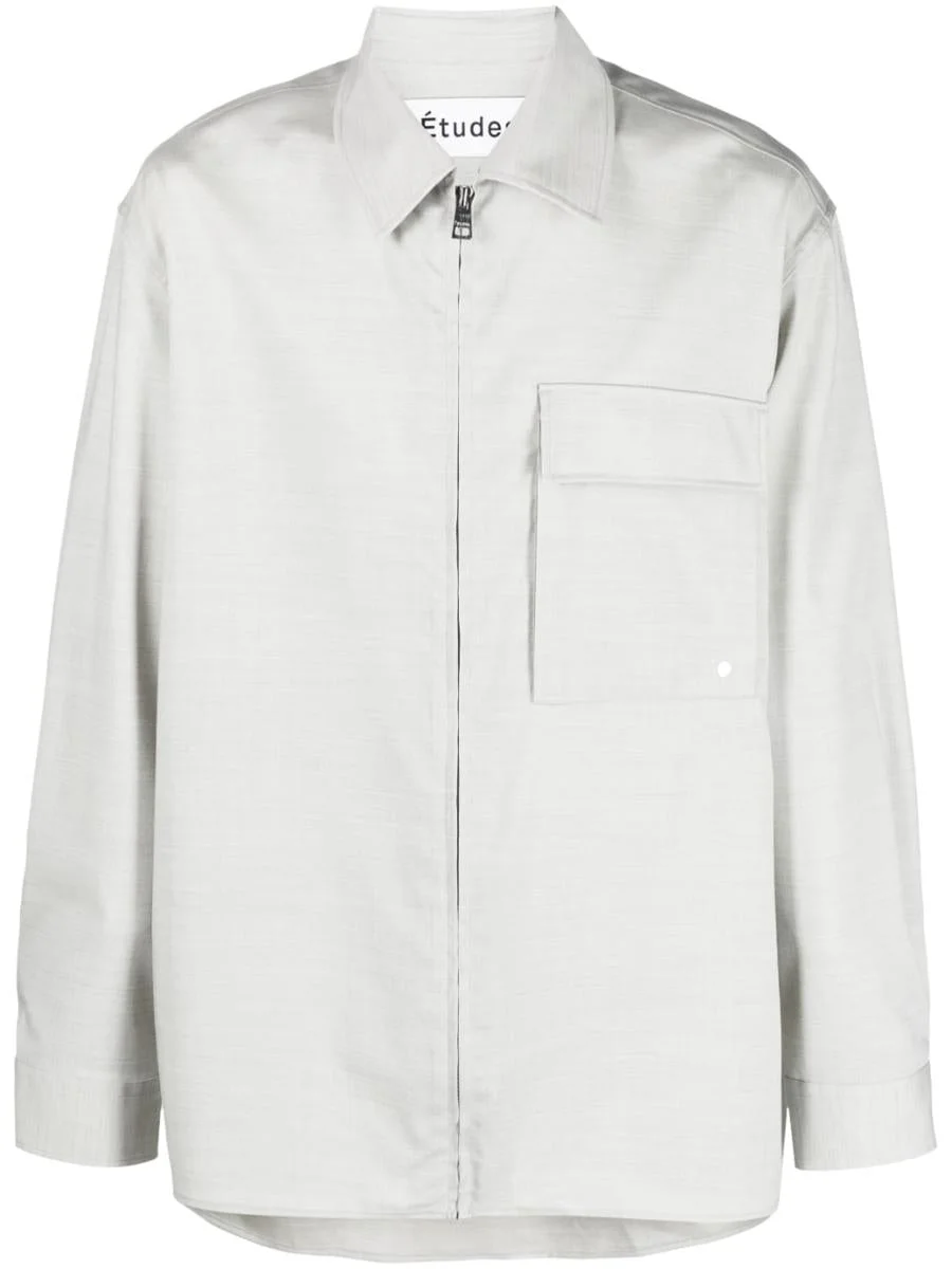 zip-up long-sleeve shirt from Etudes featuring grey, wool blend, classic collar, front zip fastening, long sleeves, press-stud fastening cuffs and curved hem. This piece fits true to size. We recommend you get your regular size Model is 1,84m / 6ft 1in wearing size 48 (IT) Gender: Men Material: WOOL 69%, POLYAMIDE 16%, VISCOSE 14%, SPANDEX/ELASTANE 1% Color: GREY Made in: PT Product ID: E23MM380E00181 *Import tax/duty will be calculated at checkout (If applicable)