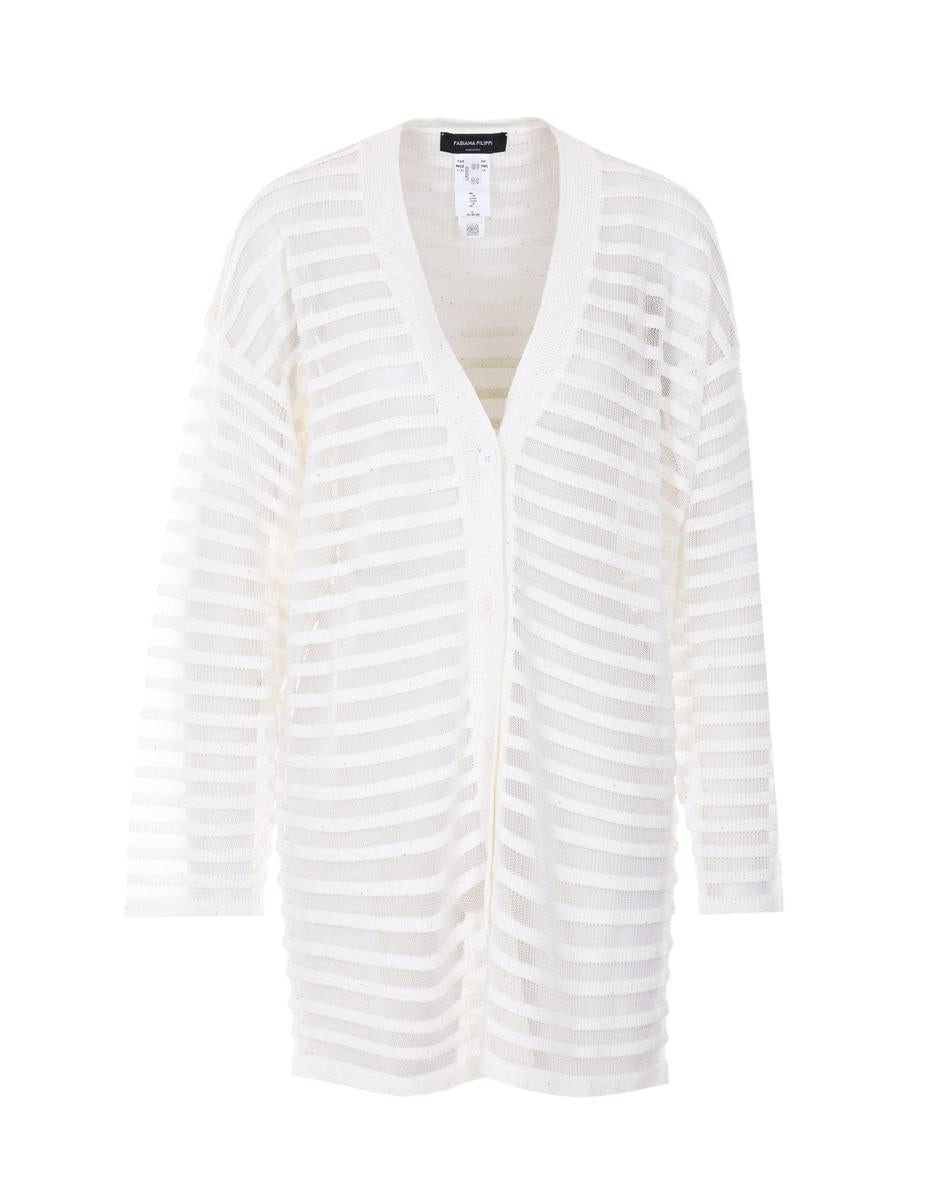 White cotton and linen cardigan with sequins