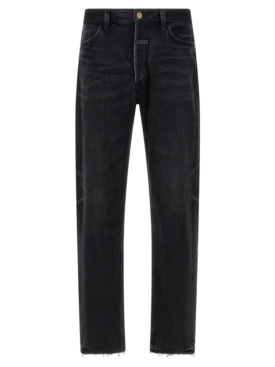'Classic 5 Pocket' jeans in used-effect delave cotton denim, button closure with front logo patch, five pockets, straight leg with raw cut hem Gender: Men Material: 100% COTTON Color: Black Made in: JP Product ID: FGE240408DNMBLACK *Import tax/duty will be calculated at checkout (If applicable)