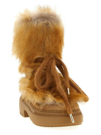 'Apres Chic' sheepskin and fur boots, round toe, tone-on-tone suede details, tubular laces with hooks and gold metal details, chuncky rubber sole with lettering logo on the heel, Gender: Women Material: 100% CALFSKIN LEATHER (BOS TAURUS) Color: MULTICOLOR Made in: Italy Product ID: 8T8591AYA1F1TP5 *Import tax/duty will be calculated at checkout (If applicable)