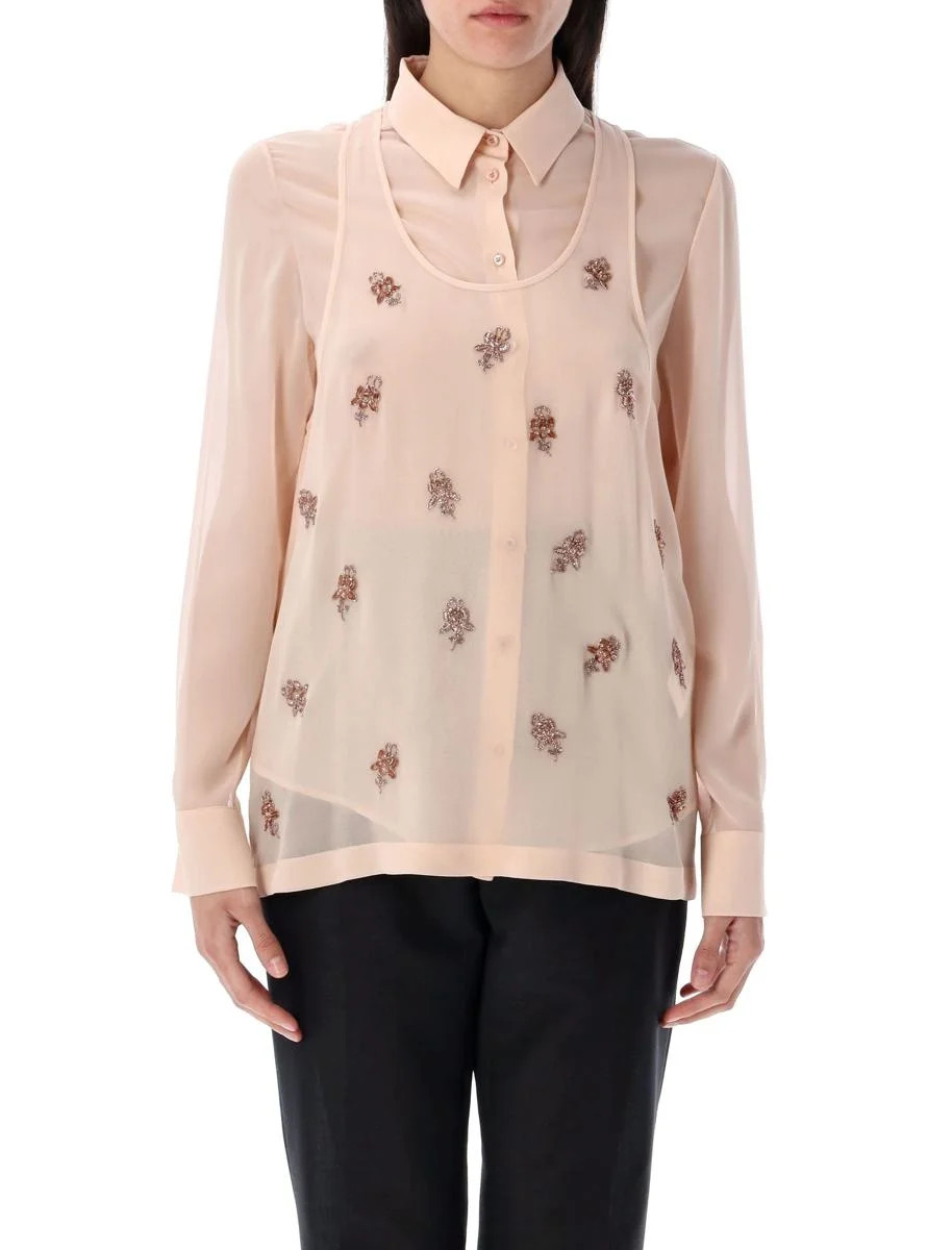 Fendi Double Layer Shirt With Embroidered Top