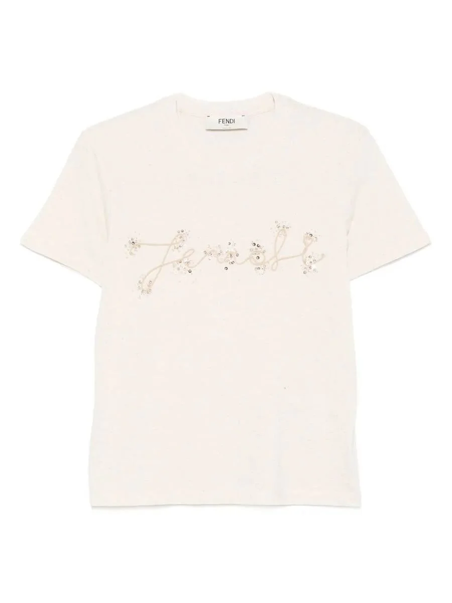 Fendi Embr T-Shirt Clothing Gender: Women Material: COTTON | 65% COTTON, 20% POLYESTER, 15% LINEN Color: Beige Made in: Italy Product ID: FS7254/ASMH_1 *Import tax/duty will be calculated at checkout (If applicable)