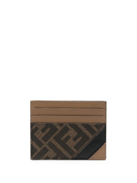 Card holder with six slots and flat central pocket. Made of textured fabric with FF motif in brown a