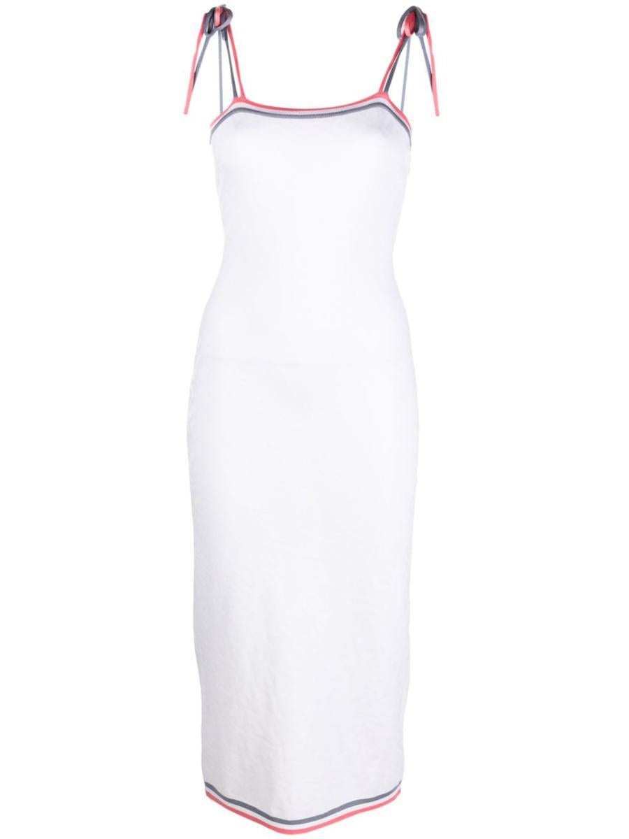 monogram midi dress from FENDI (VIP) featuring white, monogram pattern, stripe trim, square neck and spaghetti straps. This piece fits true to size. We recommend you get your regular size Model is 1,75m / 5ft 8in wearing size 40 (IT) Gender: Women Material: VISCOSE 53% POLYAMIDE 40% POLYPROPYLENE 3% POLYURETHANE 4% Color: WHITE Made in: IT Product ID: FZDB45ANZEF0ZNM *Import tax/duty will be calculated at checkout (If applicable)