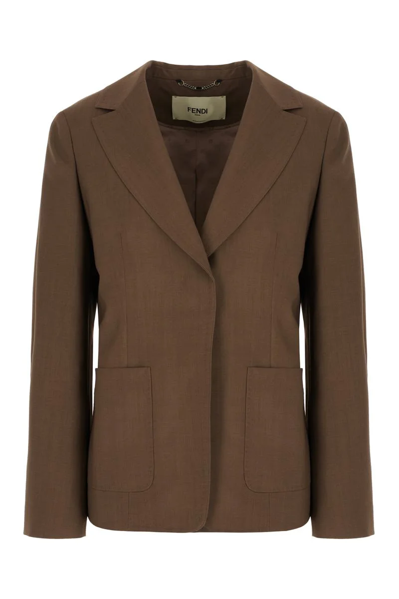 Mud wool blend blazer Gender: Women Material: EXTERIOR: 75% WOOL 25% MOHAIR LINING: 100% VISCOSE Color: BROWN Made in: IT Product ID: FJ7624AQ3H F1RXG *Import tax/duty will be calculated at checkout (If applicable)