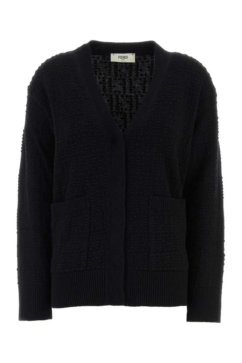 Black wool blend cardigan Gender: Women Material: EXTERIOR: 70% WOOL 30% CASHMERE Color: Black Made in: Italy Product ID: FZE549AYM0 F0GME *Import tax/duty will be calculated at checkout (If applicable)