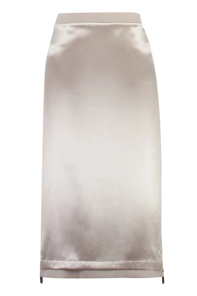 Midi pencil skirt Gabardine item Extendable side zippers Back slit 100% Viscose, 100% Virgin wool Gender: Women Material: VISCOSE Color: IVORY Made in: IT Product ID: FQ7451ANQ4_F084J *Import tax/duty will be calculated at checkout (If applicable)