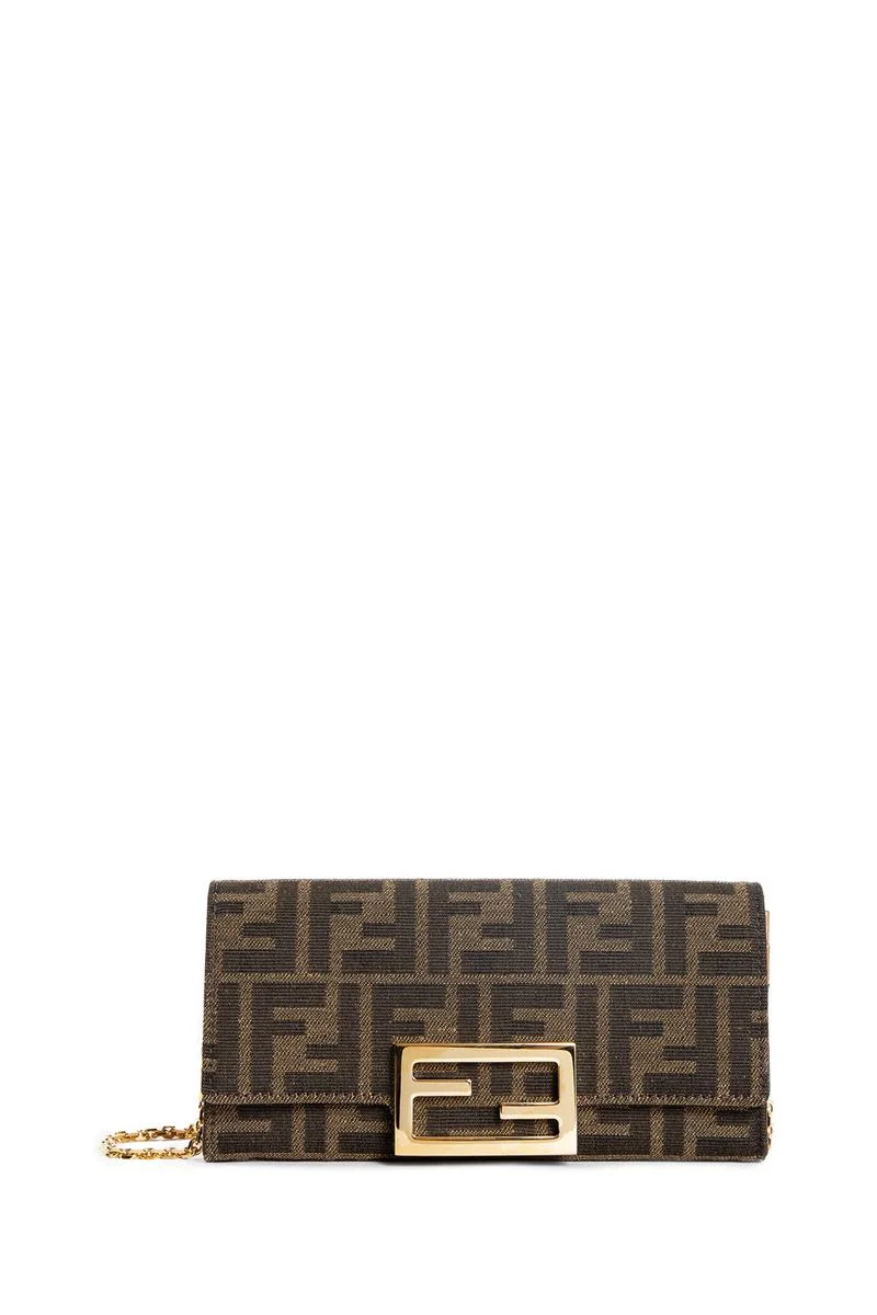 Baguette continental wallet with detachable, thin chain shoulder strap. The interior is laid out lik