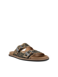 Fendi Feel sandal in jacquard FF fabric, a summer model that combines functional design and maison identity. The jacquard fabrication with iconic monogram gives a distinctive look, while the sturdy construction and comfort of the rubber sole make it perfect for facing the warm season with style and practicality. - Upper: 100 percent calfskin, 65 percent polyamide, 35 percent cotton - Color: beige - Rubber sole - Lining: 100 percent lambskin - Adjustable strap with Velcro closure - Open toe - Made in Italy - Box included - Item code: 7X1604AJZFF1ICN Gender: Men Material: 100%VIT+65%POLYAMIDE,35%COTTON+INTERNAL:100%AGN Color: BLACK TOBACCO+SAND Made in: Italy Product ID: 7X1604AJZFF1ICN_AI25 *Import tax/duty will be calculated at checkout (If applicable)