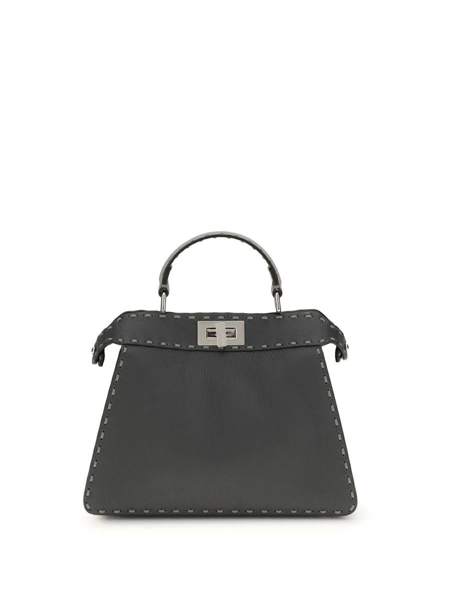 FENDI'S PEEKABOO ISEEU SMALL IS MADE OF BROWN ROMANO LEATHER WITH CAPPUCCINO SIDES, FEATURES A NATURAL GRAIN ACHIEVED BY METAL-FREE TANNING.THE LEATHER INTERIOR IS DIVIDED INTO TWO COMPARTMENTS BY A RIGID PARTITION, WITH A FLAT POCKET. SWIVEL CLOSURE ON BOTH SIDES, SILVER SADDLERY PLATE AND PALLADIUM-FINISH HARDWARE COMPLETE THE DESIGN. EQUIPPED WITH AN ADJUSTABLE LEATHER HANDLE AND SHOULDER STRAP, IT CAN BE CARRIED BY HAND, OVER THE SHOULDER OR CROSS-BODY. UNI Height: 21 cm, Length: 27 cm, Depth: 11 cm Gender: Women Material: LEATHER Color: GREY Made in: Italy Product ID: 8BN327AYDI_F1UJ6 *Import tax/duty will be calculated at checkout (If applicable)