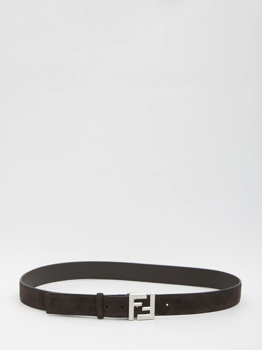 Belt in dark brown suede featuring a slim Squared FF buckle in satin-finish silver metal and a smooth leather lining. Any natural irregularities in the leather are not to be considered defects, but rather a unique characteristic of the material. Width: 3.5 cm Size nationality: EU Gender: Men Material: 100% CALFSKIN Color: BROWN Made in: Italy Product ID: 4925380 7C0550 AUGS F1TQD *Import tax/duty will be calculated at checkout (If applicable)