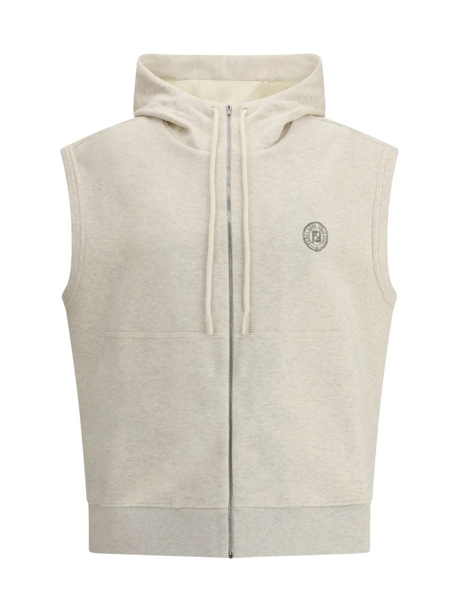 FENDI'S HOODED SWEATSHIRT VEST COMBINES COMFORT AND CONTEMPORARY STYLE. FEATURING A FRONT ZIPPER CLOSURE, IT FEATURES THE ICONIC LOGO PRINTED ON THE FRONT, TWO PATCH POCKETS AND A RIBBED HEM THAT COMPLETE THE FUNCTIONAL AND STYLISH DESIGN. STANDARD Gender: Men Material: COTTON Color: GREY Made in: Italy Product ID: FAF748AV67_F1RVF *Import tax/duty will be calculated at checkout (If applicable)