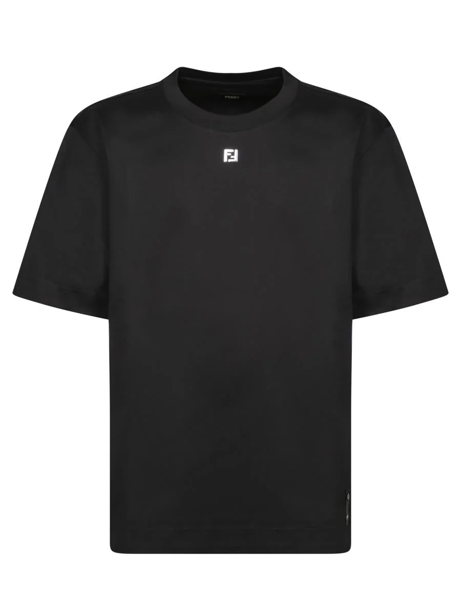 Short sleeves, front Fendi logo, black cotton crew neck.. This Fendi T-shirt blends casual with luxury featuring an iconic centrally positioned logo graphic. Crafted in premium black cotton, it offers both comfort and versatility Gender: Men Material: 100% COTTON Color: Black Made in: Imported Product ID: FY0936 ARYY F0QA1 *Import tax/duty will be calculated at checkout (If applicable)