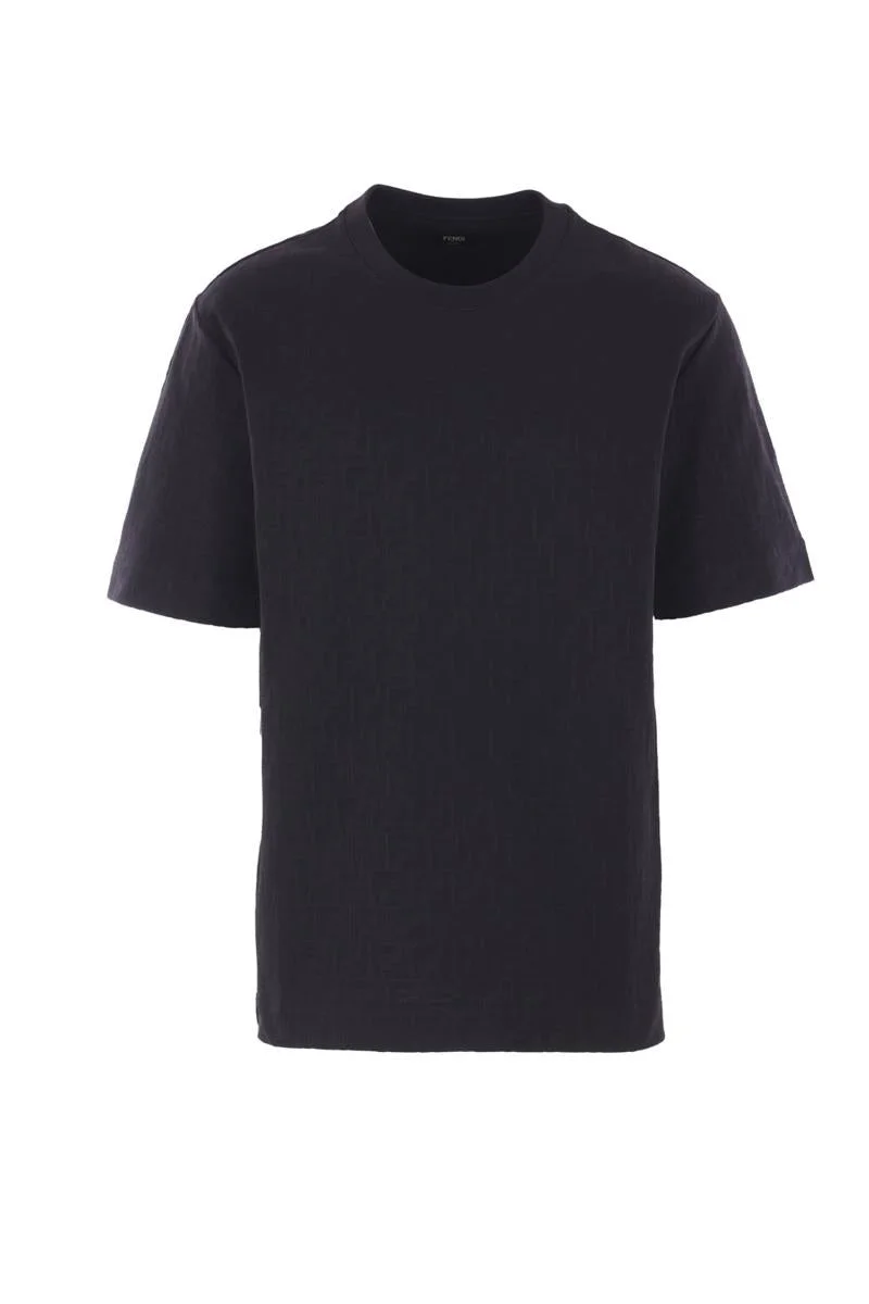 Fendi t-shirt made of black cotton piquet with an FF jacquard pattern. Featuring a crew neckline, short sleeves, and a straight hem. Gender: Men Material: 100%COTTON Color: Black Made in: Italy Product ID: FAF755AR5GF0GME *Import tax/duty will be calculated at checkout (If applicable)