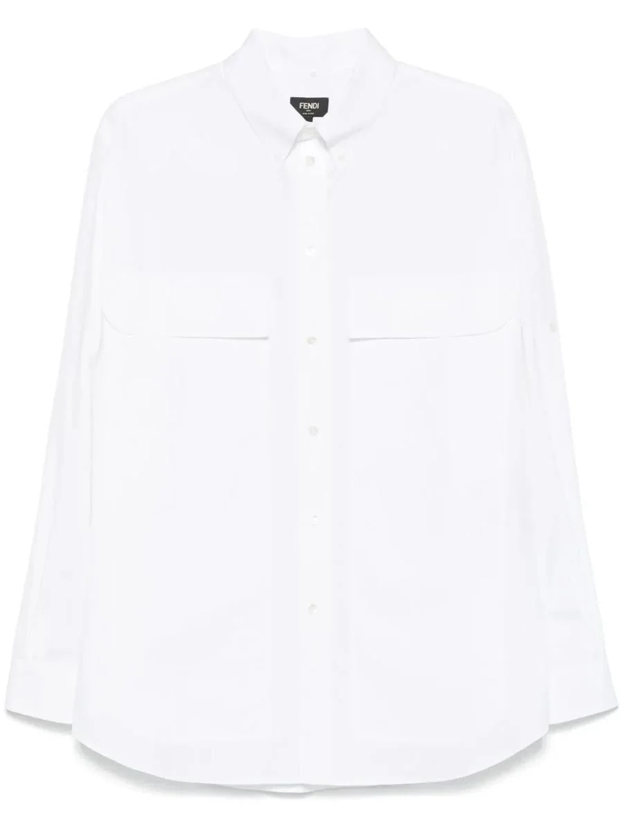 Fendi Topstitched Roma Lettering Cotton Shirt Clothing