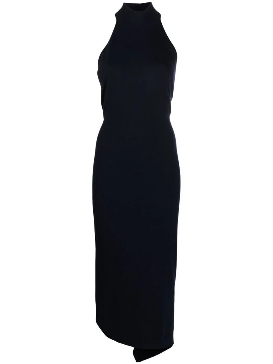 funnel-neck sleeveless ribbed-knit dress from FENDI featuring navy blue, stretch-wool, ribbed knit, ribbed-knit edge, high neck, sleeveless, fitted waistline, open back, central rear vent, asymmetric hem and mid-length. This piece fits true to size. We recommend you get your regular size Model is 1,75m / 5ft 8in wearing size 40 (IT) Gender: Women Material: WOOL 95% POLYAMIDE 4% ELASTANE 1% Color: BLUE Made in: IT Product ID: FZDB93AOEZF1M2F *Import tax/duty will be calculated at checkout (If applicable)