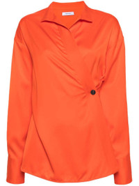 mandarin wrap design asymmetric design spread collar drop shoulder long sleeves high-cuffs buttoned cuffs fitted waistline high-low hem side button fastening concealed front button fastening Gender: Women Color: MANDARIN Made in: IT Product ID: 770456 233 *Import tax/duty will be calculated at checkout (If applicable)