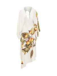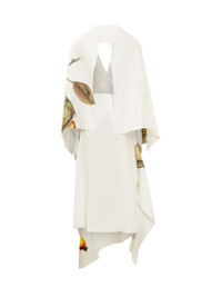 Fluid viscose midi dress. Stretch fit. American neckline with open back. Concealed side zipper closure. Sash detail, loose edges. Asymmetric hem with red topstitching along hem. Botanical motif on front and back. Gender: Women Material: OUTSIDE:97% VISCOSE 3% ELASTANE LINING:75% ACETATE 25% SILK Color: WHITE Made in: IT Product ID: 13C986 771087 *Import tax/duty will be calculated at checkout (If applicable)