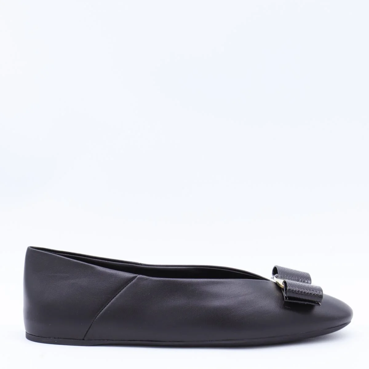 Salvatore Ferragamo Black Leather Vanna Flats