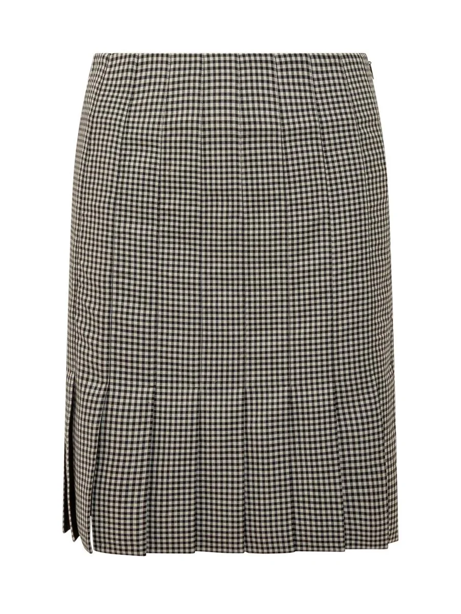 Ferragamo pleated skirt with houndstooth pattern in black and white. Gender: Women Material: OUTSIDE:98% VIRGIN WOOL, 2% SILK LINING:100% VISCOSE Color: Black Made in: Italy Product ID: 13H0990785203 422 *Import tax/duty will be calculated at checkout (If applicable)