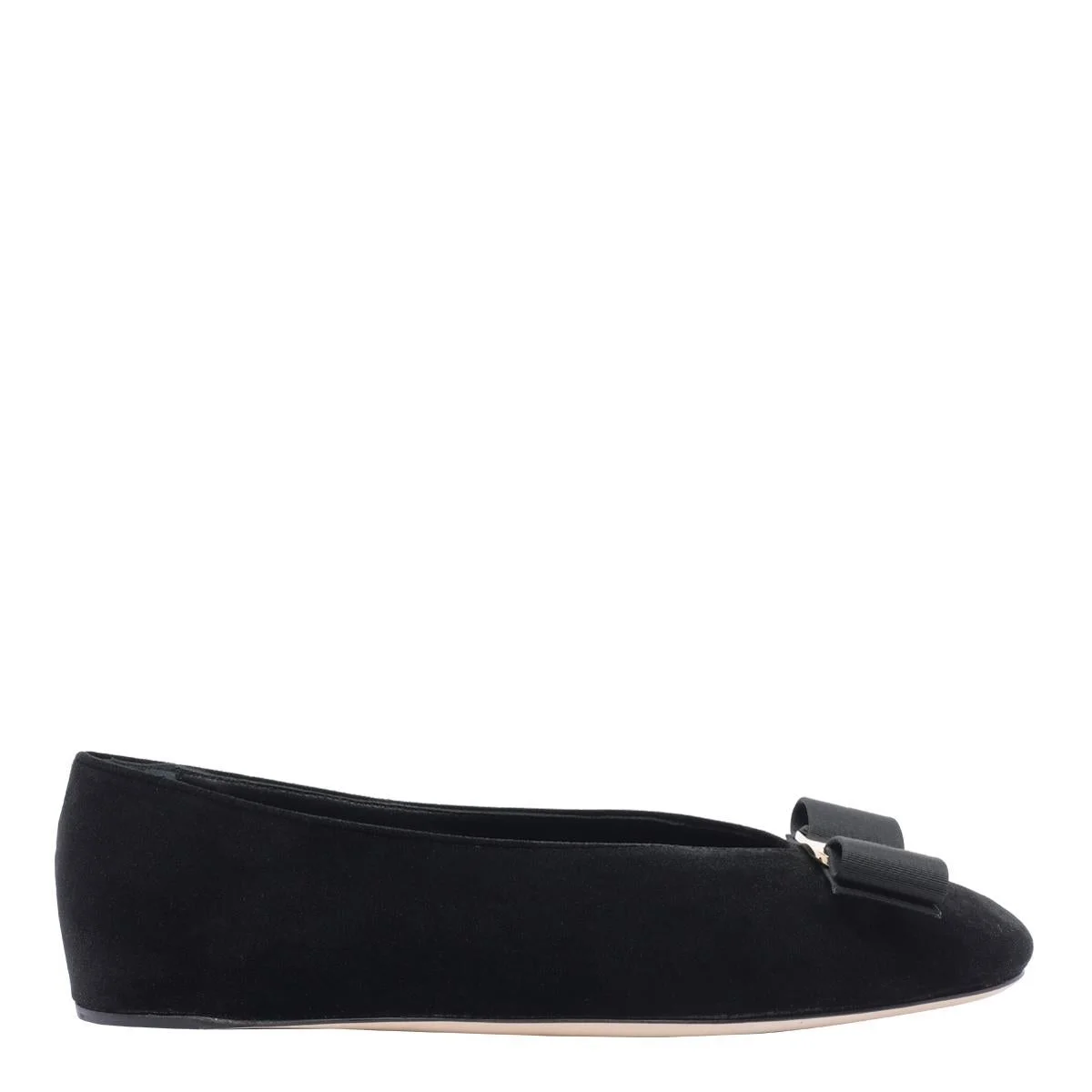 Ferragamo Black Vara Bow Ballets, Round Toe, Suede Upper, Frontal Bow Detail, EU SIZE (IT) Gender: Women Material: 100% FABRIC 100% CALF LEATHER/LEATHER SOLE Color: Black Made in: IT Product ID: 78210801I780NERO *Import tax/duty will be calculated at checkout (If applicable)