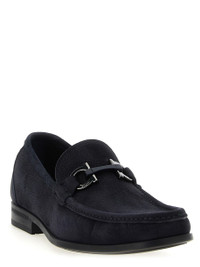 'Grandioso' nubuck loafers with metal 'Gancini' clamp and front stitched tray, tubular construction model, flexible rubber sole. Width size: EEE Gender: Men Material: 100% CALFSKIN LEATHER (BOS TAURUS) Color: BLUE Made in: Italy Product ID: 784285NAVY *Import tax/duty will be calculated at checkout (If applicable)